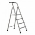 Skládací hliníkové schůdky s jednostranným vstupem, vhodné pro stavební a řemeslné práce. Madlo je opatřené háčkem na kbelík a odkládací plochou na nářadí a drobné předměty. Robustní konstrukce zajišťuje tuhost schůdků. Vroubkovaný protiskluzový povrch stupňů, vzdálenost mezi stupni je 25 cm. Opatřené plastovými ochrannými patkami.Hliníkové schůdky Harry, 4 stupně