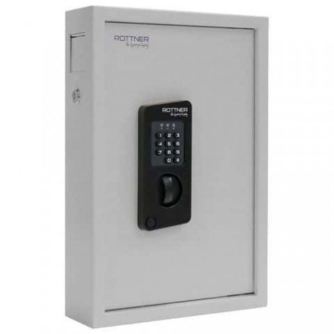 Sejf na klíče v jednoplášťovém provedení vyhotovený z kvalitní oceli. Elektronický zámek napájený čtyřmi bateriemi 1,5 V AA. Možnost zadání až 8místného kódu. Nouzové mechanické otevírání klíčem. Sejf je vybavený výškově nastavitelnými lištami s fixními háčky na klíče. Boční vhod pro vrácení klíčů. Kování zámku zvyšuje celkovou hloubku sejfu o 15 mm. Maximální úhel otevření dvířek 90°. Předvrtané otvory pro umístění na stěnu.Sejfy na klíče Rottner Keytronic s elektronickým zámkem