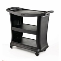 Plastový vozík se třemi policemi vhodný pro servírování v jídelních zařízeních a restauracích. Police jsou opatřené vyvýšenou hranou, která zabraňuje vypadávání předmětů z vozíku. Pojízdnost zajišťují čtyři otočná kolečka s tichým pojezdem.Servírovací policový vozík se dvěma madly, do 135 kg, 3 police