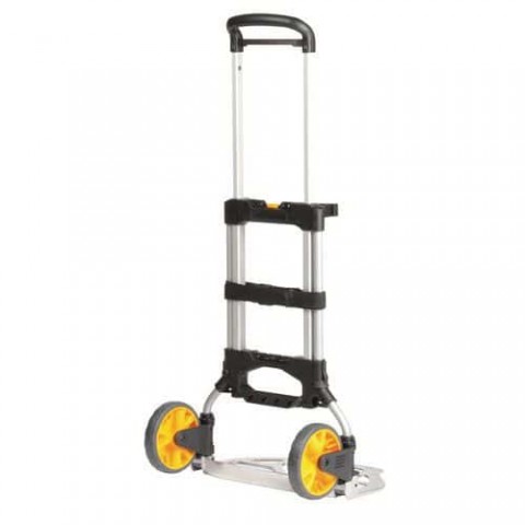 Tloušťka pouhých 6 cm, takže je mimořádně kompaktní. Ergonomické rukojeti pro bezpečnější manipulaci. Zakřivená záda pro přepravu sudů/lahví. Nešpinící kolečka s kuličkovými ložisky. Opěrka nohou pro snadné naklápění.Skládací hliníkový rudl Matador s plnými koly, do 150 kg