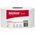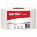 Dvouvrstvý toaletní papír Jumbo v rolích. počet vrstev: 2 návin: 180 m průměr: 23 cm šířka: 9,5 cm počet útržků: 1 440 materiál: bělený recyklovaný papír barva: 75 % bílá balení: 6 ksToaletní papír Katrin Classics Gigant 2vrstvý, 23 cm, 1 440 útržků, 75% bílá, 6 rolí