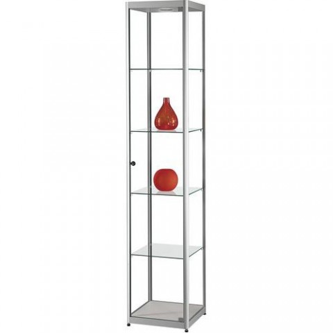 Skleněné vitríny vhodné pro prezentaci produktů. Vybavená čtyřmi nastavitelnými skleněnými policemi. Sklopné dveře z tvrzeného skla tl. 5 mm se zámkem. 1x LED osvětlení (teplá bílá) v horní liště. Nastavitelné nožky pro vyrovnání.Skleněné produktové vitríny Manutan Expert, 200 x 40 x 40 cm