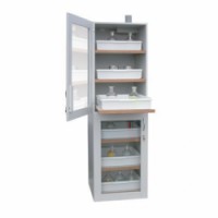 Skříň je určená pro bezpečné a schválené skladování agresivních, nehořlavých nebezpečných látek na pracovištích. Konstrukce z ocelových plechů potažených vysokotlakým laminátem (HPL) čímž je odolná nárazům i oděru. Dva samostatné oddíly umožňují skladování kyselin a zásad odděleně. Vnitřek skříně i veškeré vybavení z nekorozivních komponent. Akrylátová výplň dveří umožňuje rychlou kontrolu obsahu skříně. Každý oddíl samostatně uzamykatelný cylindrickým zámkem. Možnost vyrovnání drobných nerovností podlahy rektifikačními šrouby. Přívod vzduchu zajišťuje ventilační mřížka v zadní stěně. Přípojka na odvětrávací systém DN 80 v horní části skříně. Značení podle ASR A1.3, shoda s TRGS 526 / DGUV.Skříně na kyseliny a zásady StoreLAB SLS, 600 x 600 x 1935 mm, 2 oddíly, 6 polic