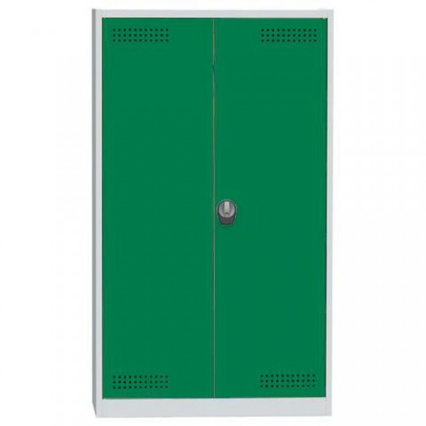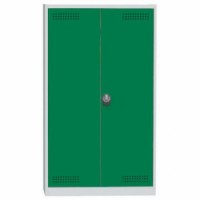Skříně slouží k uložení chemických látek ve vlastním obalu. Uložené kapaliny stojí na roštu a tím nezmenšují záchytný objem polic. Skříň obsahuje 4 záchytné police s roštem o záchytném objemu 19 l na polici a spodní záchytnou vanu bez roštu o objemu 20 l. Dvoubodové uzamykání cylindrickým zámkem na klíč. Vyztužené dveře s větracími otvory uložené na vnitřních čepech lze otevřít do úhlu 110°. Vnitřní strana dveří opatřena přihrádkou pro dokumenty k uloženým kapalinám. Povrchová úprava konstrukce práškovým lakem v barvě RAL.Skříně na uskladnění kapalin, 1950 x 1200 x 500 mm