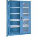 Ochrana proti prachu, kapalinám a mechanickému opotřebení díky uzavřenému rámu s povrchem odolným proti nárazům a oděru. Plné plechové dveře, nebo dveře s plexisklem jsou zamykatelné díky bezpečnostního zámku. Možnost nastavení výšky polic. Nosnost police 60 kg.Dílenské skříně LISTA s policemi, plné dveře nebo dveře s plexisklem, 1250x580x1950mm