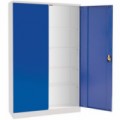 Svařovaná dvoudvéřová skříň v šedo-modrém barevném provedení. Součástí jsou 4 výškově stavitelné police, každá z nich disponuje nosností 100 kg. Uzavírání pomocí 3-bodového zámku.Svařovaná kovová dílenská skříň, 195 x 120 x 60 cm, 4 police, nosnost 100 kg/police, šedá/světle modrá