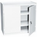 Nízká dílenská skříňka vhodná pro uložení nářadí a dílenského materiálu. Křídlové dveře zavěšené na vnějších pantech. Vybavená dvěma policemi pro přehledné uspořádání, maximální nosnost na polici je 50 kg. Možnost uzamčení cylindrickým zámkem.Nízká kovová dílenská skříň Manutan Expert, 106 x 100 x 45 cm