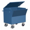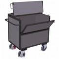 Uzamykatelné bedny s víkem a sklopnou přední stěnou. Otevírací víko lze uzamknout pomocí visacího zámku. Ložná plocha je vyrobena z MDF desky. Jednoduchá manipulace pomocí kovového madla. Pohyb zajišťují čtyři kola s valivými kuličkovými ložisky, z nichž dvě jsou pevná a dvě otočná s brzdou Easy Stop a ochrannými kryty.Uzavíratelné skříňové vozíky s madlem a plnými stěnami, do 500 kg, 2 sklopné stěny