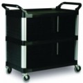 Odolné a stylové přepravní nebo skladovací vozíky pro vnitřní použití nebo funkční využití. Kovové sloupky a tvarované police pro pevnost a elegantní design. Otočná kolečka o průměru 10,2 cm, která neznačí. Široké přihrádky pro uložení široké škály vybavení a potřeb, maximální zatížení 135 kg.Vozík X-Tra uzavřený ze 3 stran_Rubbermaid