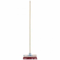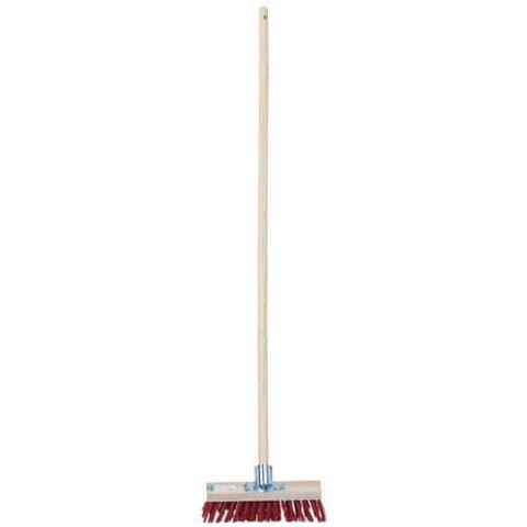 Smeták se syntetickými vlákny vhodný na silnice a hrubé podlahy. Odolná dřevěná rukojeť s otvorem pro zavěšení.Smeták s dřevěnou násadou Manutan Expert, šířka 30 cm