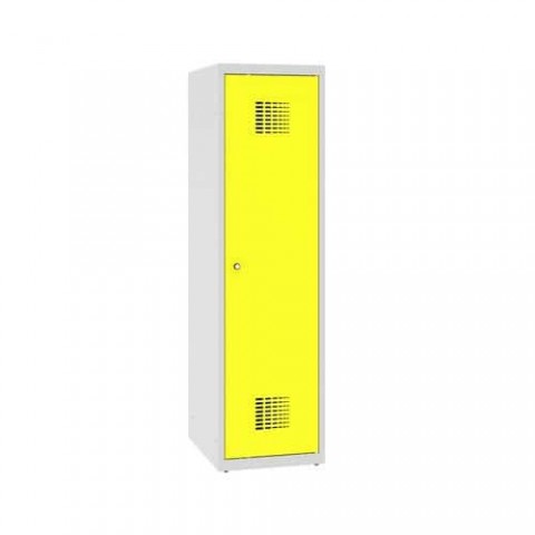 Svařované šatní skříně se sníženou výškou. Vhodné do škol pro žáky prvního stupně. Vyrobeny z ocelového plechu s povrchovou úpravou práškovým lakem. Skříně jsou vybaveny dvěma policemi na knihy, policí na boty a součástí jsou také 2 háčky na oblečení a samolepící jmenovka na dveřích. Větrací mřížky ve dveřích, úhel otevření dveří s bezpečnostní pojistkou max. na 90°, samolepicí štítek na jméno, možnost dokoupení horního šikmého nástavce. Uzamykání cylindrickým tříbodovým zámkem.Snížené školní šatní skříně, 1 sloupec, 400 mm, tříbodový cylindrický zámek