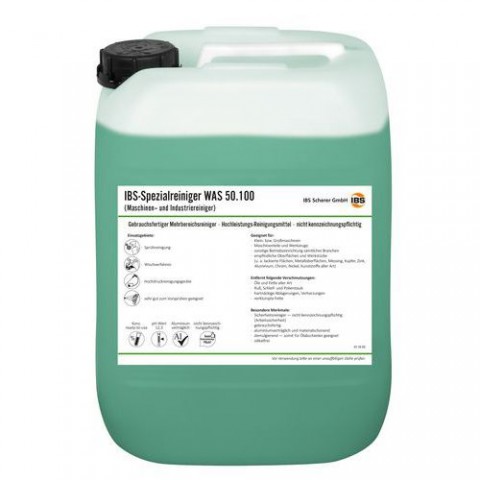 Čisticí kapalina pro efektivní mytí strojů, nástrojů a choulostivých povrchů dodávaná v 20l kanystru. Použití nástřikem, stíráním nebo do vysokotlakého čističe. Možnost čištění choulostivých povrchů, lakovaných povrchů, mosazi, mědi, zinku, hliníku, chromu, niklu a plastů. Účinně odstraňuje oleje a tuky, saze, prach z leštění a broušení, zatvrdlé usazeniny. Šetrný k životnímu prostřední, bez silikonu, deemulgující. Čisticí kapalina splňuje požadavky týkající se odpadních vod ÖNORM B 5104, B 5105 a B 5106Speciální čisticí kapalina IBS WAS 50.100, pro strojní a průmyslové čističe, 20 l