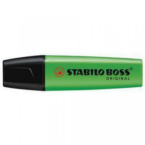 Zvýrazňovač v ergonomickém designu vhodný zejména pro práci s papírem, kopiemi nebo faxem. Klínový hrot s vysokou životností. Díky technologii Anti-Dry-Out lze ponechat zvýrazňovač až 4 hodiny bez víčka. Náplň tvoří fluorescenční inkoust na vodní bázi (zdraví zcela neškodný).Stabilo Boss