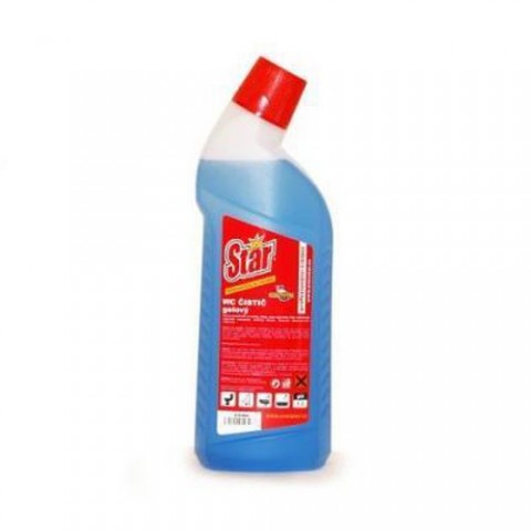 Star WC gelový čistič, na rez a vodní kámen, 750ml. Gelový prostředek na toalety, dřezy, vany, umyvadla. Čistí, odstraňuje vápenaté usazeniny, močový kámen. Zanechá dlouhotrvající svěží vůni. Dávkování podle potřeby, neředí se. Vysoce kyselý - pH 1-3.STAR WC gelový čistič na rez a vodní kámen 750ml