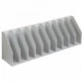 Plastový organizér dokumentů v šedé barvě, deset přihrádek. Vhodný i do skříní s policemi nebo jako stojan na pořadače. barva: šedá rozměry v x š x h: 21 x 90 x 29 cm materiál: plast počet přihrádek: 10 šířka přihrádky: 82 mm dodáváno ve smontovaném stavuStojan na dokumenty, 10 přihrádek