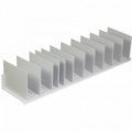 Plastový organizér dokumentů v šedé barvě, třináct přihrádek. Vhodný i do skříní s policemi nebo jako stojan na pořadače. barva: šedá rozměry v x š x h: 21 x 115 x 27,5 cm materiál: plast počet přihrádek: 13 šířka přihrádky: 82 mm dodáváno ve smontovaném stavuStojan na dokumenty, 13 přihrádek