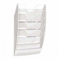 Stylový a funkční jednodílný nástěnný držák na dokumenty. Dokumenty lze ukládat vertikálně nebo horizontálně. Otvor ve tvaru V umožňuje vkládat i malé dokumenty. Překrývá se a nebo staví vedle sebe a vytváří tak škálovatelné sady 10, 15, 20 atd. přihrádek.Nástěnný zásobník na dokumenty CEP, plastový, 5 komor