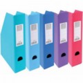 Pořadače na časopisy jsou vyrobeny z desek potažených plastem, dodávají se v plochém stavu a snadno se sestavují. Obsah pořadače lze jasně identifikovat díky držáku na štítky, který obsahuje štítek s kartou a je připevněn na nejširší části. Otvor pro palec pro snadnou manipulaci.Plastový pořadač Exacompta, šířka hřbetu 100 mm