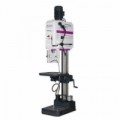 Převodová sloupová vrtačka v těžkém, masivním litinovém provedení. Automatické mazání převodovky pomocí olejového čerpadla. Velký, výškově stavitelný ochranný kryt sklíčidla s mikrospínačem. Pracovní stůl, který je otočný kolem své osy o 90° a okolo sloupu.Sloupová převodová vrtačka OPTIdrill DH 45 G