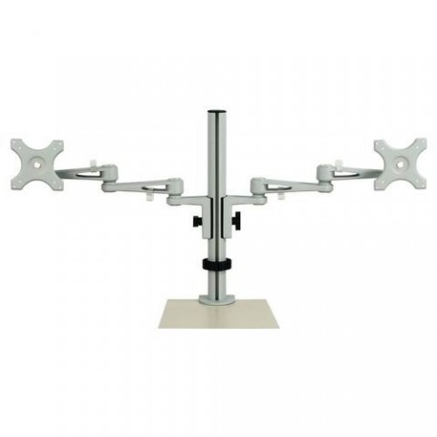 Stolní kovový držák pro upevnění dvou monitorů. Držák je výškově nastavitelný a obrazovku je možné sklápět nahoru a dolů, a zároveň natáčet do stran. Splňuje VESA normu s rozměry pro uchycení obrazovky 75 x 75 mm a 100 x 100 mm. Uchycení ke stolu pomocí svorky, maximální rozvor svorky je 7 cm.Stolní držák na 2 obrazovky, nosnost 10 kg - Manutan Expert