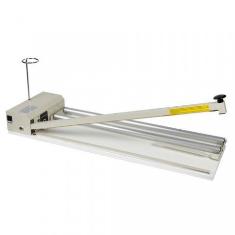 Svářečka s dlouhými svařovacími čelistmi vhodná k výrobě i k uzavírání fóliových sáčků. Svar je proveden odporovým drátem. Fólie je současně svařena a odtavena. Impulsní svářečka je vybavena termistorem (tepelná ochrana transformátoru) a zabudovaným odvíječem fólie.Stolní svářečka, 800 mm