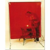 Přenosná svařovací zástěna. Rám je vyroben z trubek z galvanizované oceli a vlastní zástěna je ze samozhášivého PVC, stejně jako standardní svařovací závěsy a je vhodné též pro svařování (dle EN 1598). Vnější rozměry 2000 x 2000 mm (samotná zástěna má výšku 1700 mm). Hmotnost 7,5 kg.Svařovací zástěna, červená