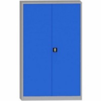 Svařovaná dvoudvéřová skříň v šedo-modrém barevném provedení. Součástí jsou 4 výškově stavitelné police, každá z nich disponuje nosností 100 kg. Uzavírání pomocí 3-bodového zámku.Svařovaná kovová dílenská skříň, 195 x 120 x 50 cm, 4 police, nosnost 100 kg/police, šedá/světle modrá