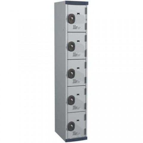 Svařovaná šatní skříň Acial, 1 sloupec, 5 boxů, 300 mm, cylindrický zámek