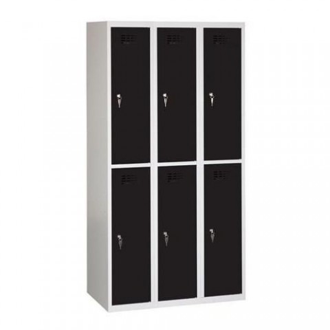 Svařované boxové skříně s odlehčenou konstrukcí a výztuhami zajišťujícími dobrou stabilitu. Vhodné pro odkládání osobních věcí na pracovištích, kulturních akcích, v převlékárnách apod. Perforovaná dvířka zavěšená na vnitřních pantech zajišťují účinné odvětrávání vnitřního prostoru. Jednotlivé boxy jsou samostatně uzamykatelné cylindrickým zámkem s možností výměny za otočný uzávěr (nutno dokoupit zvlášť). Možnost umístění štítku se jménem.Svařované šatní skříně Charles odlehčené, 6 oddílů, cylindrický zámek