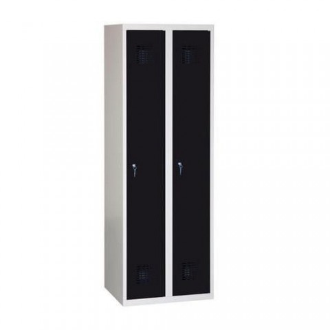 Kovové šatní skříně ze dvou oddílů v několika barevných variantách. Skříně mají odlehčenou konstrukci s výztuhami zajišťujícími dobrou stabilitu. Vyrobeno z ocelového plechu tloušťky 0,5 mm. Účinné odvádění vlhkosti z oděvů větracími otvory ve spodní i vrchní části dveří. Dveře jsou uloženy na vnitřních pantech.Svařované šatní skříně Danny, 2 oddíly, tříbodový zámek