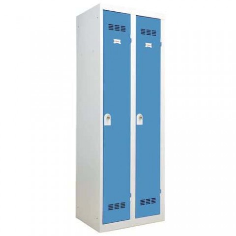 Šatní skříň svařovaná z ocelového plechu tloušťky 0,7 mm. Každý oddíl je vybaven tyčí na ramínka a dvěma háčky. Uzamykání otočným uzávěrem na visací zámek (není součástí dodávky). Perforovaná dvířka zajišťují účinné odvětrávání vnitřního prostoru. Možnost umístění štítku se jménem.Svařované šatní skříně Vinco, 2 oddíly, 300 mm, otočný uzávěr