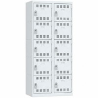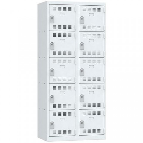 Více-oddílová šatní skříň svařovaná z ocelového plechu tloušťky 0,7 mm. Jednotlivé oddíly jsou samostatně uzamykatelné cylindrickým zámkem se dvěma klíči. Perforovaná dvířka zajišťují účinné odvětrávání vnitřního prostoru. Možnost umístění štítku se jménem.Svařované šatní skříně Vinco, 2 sloupce, 10 boxů, 400 mm, cylindrický zámek