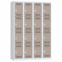Více-oddílová šatní skříň svařovaná z ocelového plechu tloušťky 0,7 mm. Jednotlivé oddíly jsou samostatně uzamykatelné cylindrickým zámkem se dvěma klíči. Perforovaná dvířka zajišťují účinné odvětrávání vnitřního prostoru. Možnost umístění štítku se jménem.Svařované šatní skříně Vinco, 4 sloupce, 16 boxů, 300 mm, cylindrický zámek