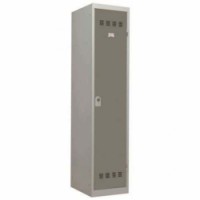 Šatní skříň svařovaná z ocelového plechu tloušťky 0,7 mm. Každý oddíl je vertikálně rozdělen mezistěnou umožňující odložení čistých a špinavých oděvů. Každý oddíl je vybaven tyčí na ramínka a dvěma háčky. Uzamykání otočným uzávěrem na visací zámek (není součástí dodávky). Perforovaná dvířka zajišťují účinné odvětrávání vnitřního prostoru. Možnost umístění štítku se jménem.Svařované šatní skříně Vinco s mezistěnou, 1 oddíl, 400 mm, otočný uzávěr