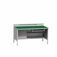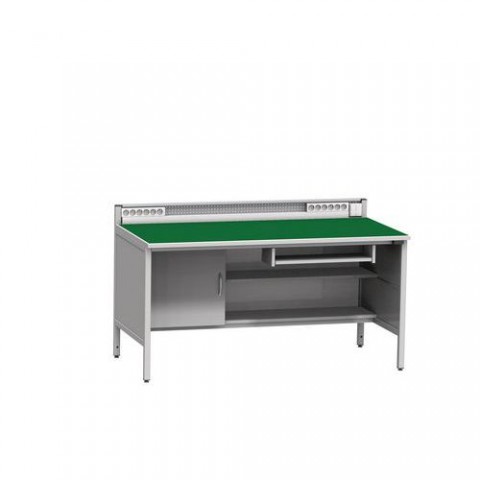 Antistatický pracovní stůl určený do provozů, kde je potřeba zamezit vytváření elektrostatického výboje ESD (electrostatic discharge). Díky svým antistatickým vlastnostem je stůl vhodný jako vybavení do antistatických pracovišť. Konstrukčně je řešen jako pevný ocelový svařenec. Povrch pracovní desky je tvořen antistatickou pryžovou rohoží a součást stolu tvoří rovněž i zemnicí box na připojení náramků se třemi připojovacími zdířkami (banánky i patentky). Stůl nabízí dvě konzole se šesti elektrickými zásuvkami. Ve spodní části stolu se nachází skříňka pro počítač, výsuv pro klávesnici a dvě police na nástroje či dokumenty. Stůl splňuje požadavky normy ČSN EN 61340-5-1. Zásuvky ve standardu E vhodné pro klienty z CZ, SK a PL. rozměry v x š x h: 82,2 x 160 x 81 cm materiál: ocel nosnost: 200 kg rozměry pracovní desky v x š x h: 2,5 x 160 x 81 cm materiál pracovní desky: pryžová rohož rozměry skříňky v x š x h: 51,5 x 53 x 76 cm barva pracovní desky: zelená barva podnoží: šedá RAL 7035 barSvařovaný antistatický pracovní stůl, 94 x 160 x 81 cm