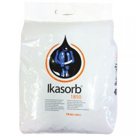 Univerzální granulovaný sorbent minerálního původu pro bezpečné a efektivní odstranění úniků olejů, maziv, kyselin (s výjimkou kyseliny fluorovodíkové), zásad a dalších kapalin na bázi vody. Ideální pro použití na vozovkách při dopravních nehodách, na letištích, čerpacích stanicích a dalších průmyslových či komerčních provozech. Kalcinovaný mikrogranulát na bázi křemeliny (moler, diatomit) nabízí 100% přírodní složení, což usnadňuje jeho použití, přepravu a skladování. Velikost granulí: 0,5–1,5 mm. Protiskluzový účinek.Sypký sorbent Ikasorb 1850, sorpční kapacita 10,5 l, balení 10 kg