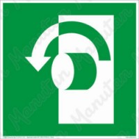 Bezpečnostní značka, tabulka nebo samolepka "Pro otevření otočit proti směru hodinových ručiček" plně odpovídá požadavkům právních a technických předpisů. Zejména Nařízení vlády č. 375/2017 Sb., ČSN ISO 3864-1, ČSN ISO 3864-2, ČSN ISO 3864-3, ČSN ISO 3864-4. Doplňková tabulka pro označení směru pro otevření dveří. Tabulku je vhodné doplnit textovou tabulkou.Tabulky bezpečí, fotoluminiscenční - Pro otevření otočit proti směru hodinových ručiček
