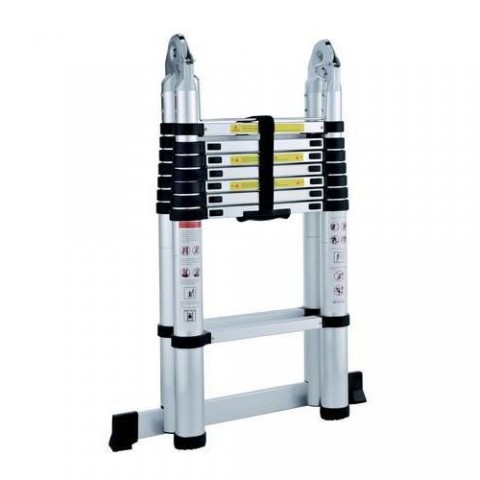 Teleskopický žebřík ze dvou dílů, vhodný pro profesionální i domácí použití. Možnost použití jako štafle nebo opěrný žebřík. Každá příčka je opatřená pojistkami zamykacího mechanismu pro nastavení délky žebříku. Lze jej složit do minimální úložné velikosti.Teleskopický hliníkový žebřík, 2 x 8 příček