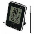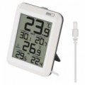 Digitální teploměr s drátovou sondou 0,9 m. Kontinuální zobrazení maximální a minimální teploty a vlhkosti, měření a záznam hodnoty tlaku. Indikace teploty v interiéru od 0 do 60 °C, v exteriéru od -40 do 60 °C. Přesnost měření 0,1 °C, lze přepínat jednotky mezi °C/°F. LCD displej s velkými číslicemi, rozměry displeje 41 x 52 mm. Možnost zavěšení na zeď nebo postavení na stůl či komodu. Napájení 2 x 1,5 V AAA.Digitální teploměr Emos E0422