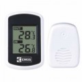 Digitální teploměr se zobrazením vnitřní a venkovní teploty pomocí bezdrátového čidla s dosahem až 100 m ve volném prostoru. Měření vnitřní teploty od 0 do 60 °C a venkovní teploty od -40 do 60 °C. Možnost upevnění na zeď.Digitální bezdrátový teploměr Emos E0042