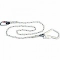 Pletené lano. S jednou ocelovou karabinou s automatickým zámkem a jednou karabinou s automatickým zámkem na lešení. Náprstková poutka pro lepší odolnost proti oděru. Chráněné švy pod průhledným pláštěm, který umožňuje vizuální kontrolu švů.Jednoduché lano s lešenářskou karabinou
