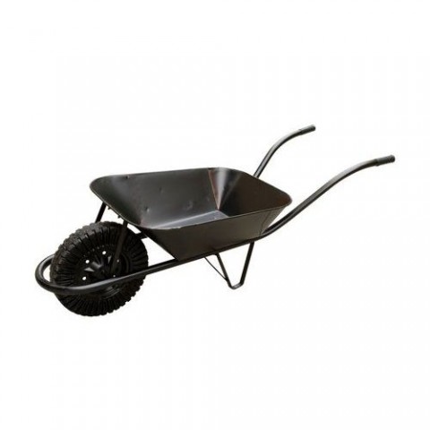 Přepravní prostředek na stavbách, zahradách, na přepravu stavebních materiálů, zeminy, dřeva, kameniva.TOPTRADE kolečko stavební, plechové, černé, kolo tvrdý bantam 60 l, profi