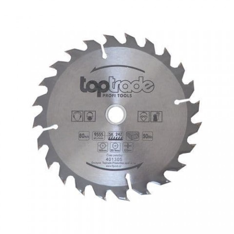 Kvalitní kotouč s SK plátky zajistí čisté řezy. Zuby jsou střídavě šikmé. Není určeno pro ruční úhlové brusky!!!!TOPTRADE kotouč pilový, na dřevo, s SK plátky, 24 zubů, 160 x 2,2 x 20/16 mm