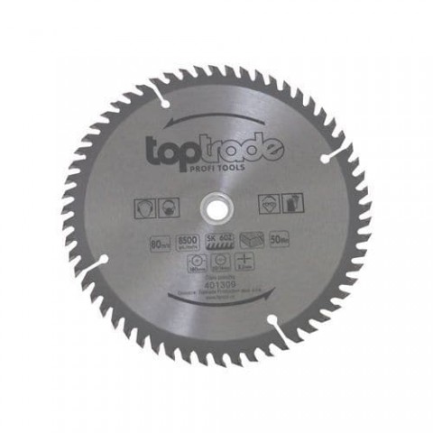 Kvalitní kotouč s SK plátky zajistí čisté řezy. Zuby jsou střídavě šikmé. Není určeno pro ruční úhlové brusky!!!!TOPTRADE kotouč pilový, na dřevo, s SK plátky, 60 zubů, 180 x 2,2 x 20/16 mm