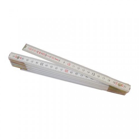 Skládací certifikované měřidlo určené na přesné měření do stavebnictví a domácnosti.TOPTRADE metr skládací, dřevěný, bílý, 2 m, certifikovaný