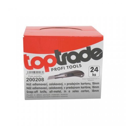 TOPTRADE nůž odlamovací, celokovový, v prodejním kartonu, 18 mm, balení 24 ks