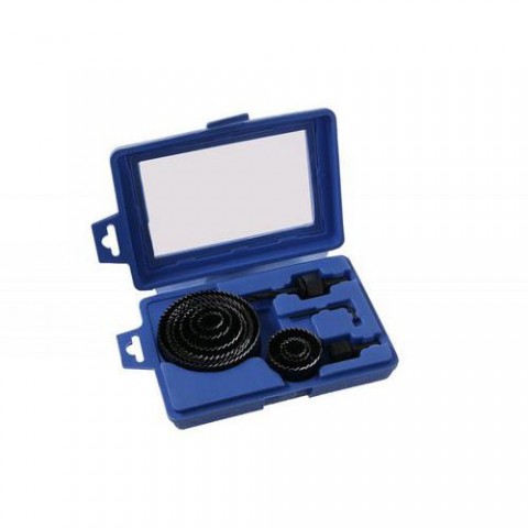 Sada vykružovacích pilek, do dřeva a sádrokartonu. Obsahuje průměry: 19, 22, 25,5, 36, 44, 51, 60, 67, 82 mm + inbus klíč + 2 x vodící vrták.TOPTRADE pilka vykružovací, korunková, sada 12 ks