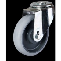 Pojezdová kola s běhounem z termoplastického elastomeru Ecoforma®. Běhoun má nízký válivý odpor a je odolný vůči chemikáliím a páře. Nezanechává stopy a dobře odolává nečistotám jako jsou kovové hobliny. Tvrdost běhounu je 70° Shore A.TPE transportní kola se středovým otvorem, průměr 160 - 200 mm, otočná, kuličková ložiska