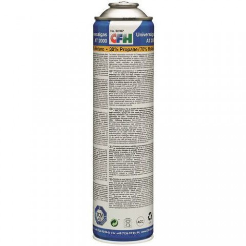 Náhradní náplň aktivního plynu AT 2000 pro univerzální použití pro páječky, bio-zahradníky apod. Lze použít také jako alternativní plyn pro svářecí soupravu. Aktivní plyn se skládá z butanu 70 obj. % a propanu 30 obj. %. objem: 330 g/600 mlUniverzální aktivní plyn AT 2000, 330 g/600 ml