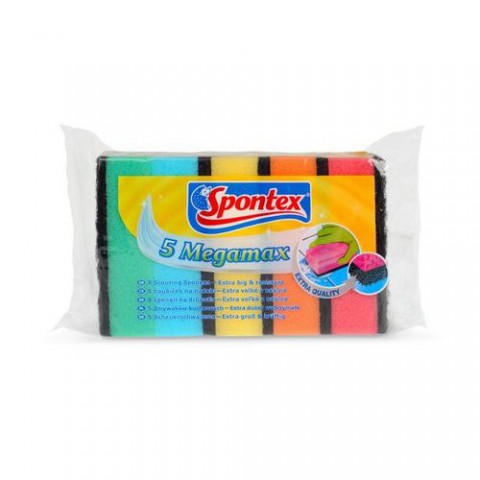 Sada pěti velkých houbiček na nádobí. Houbičky jsou opatřené drsnou vrstvou pro mytí zaschlých povrchů.Univerzální houbičky na nádobí, 5 ks